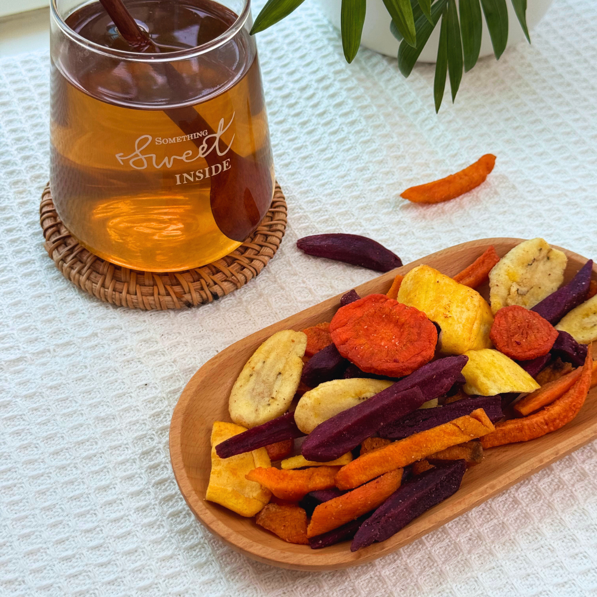 Củ Quả Sấy Giòn Hatisa được làm từ các nguyên liệu nông sản quen thuộc như khoai lang tím, khoai lang vàng, cà rốt, mít, chuối, susu. Áp dụng công nghệ chiên chân không hiện đại, giúp sản phẩm không chỉ giòn ngon mà còn giữ trọn được hương vị và màu sắc tự nhiên. Đây là món snack lành mạnh cho cả gia đình.